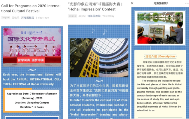 INTERNATIONAL CULTURAL FESTIVAL, 2020" of Hohai University in the upcoming